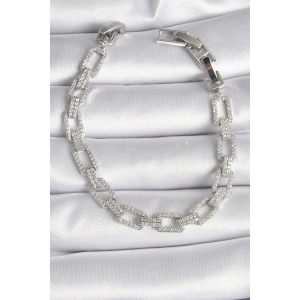 Pirinç Gümüş Renk Zirkon Taşlı Zincir Model VIP Seri Kadın Bileklik