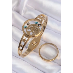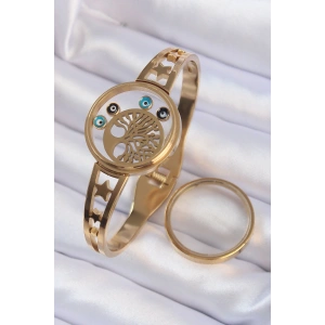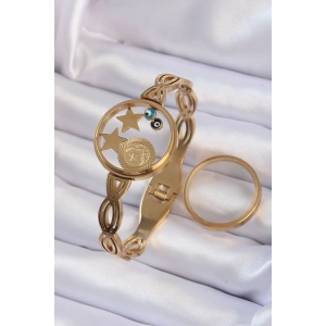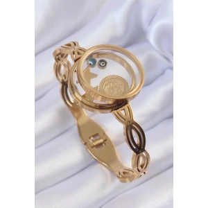 316L Çelik Gold Renk Nazar Boncuk Tasarımlı Bileklik
