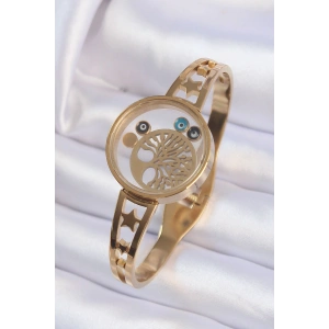 316L Çelik Altın Renk İçi Yaşam Ağacı ve Nazar Boncuk Figürlü Açılabilir Fanus Kelepçe