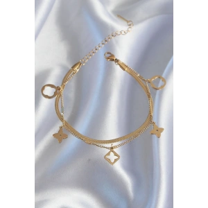 316L Çelik Gold Renk Çift Zincir Yonca Tasarım Bileklik