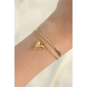 316L Çelik Gold Renk İtalyan Zincirli Kalp Model Bileklik