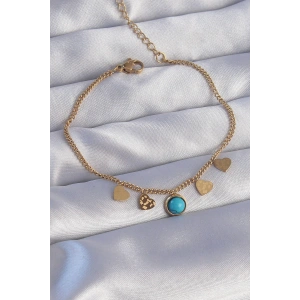 316L Çelik Gold Renk Minimal Kalpli Mavi Taş Detaylı Bileklik