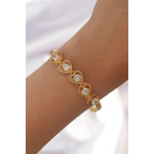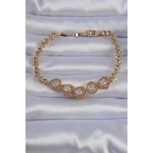Pirinç Gold Renk İçi Zirkon Taşlı Kalp Figürlü Bileklik