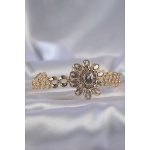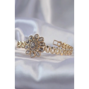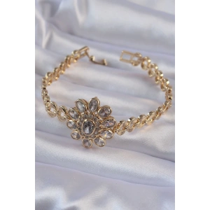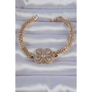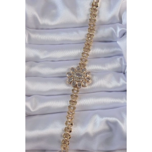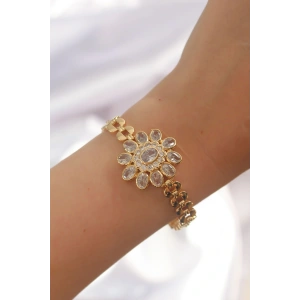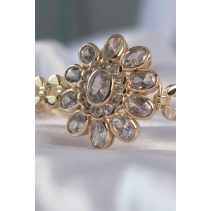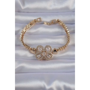 Pirinç Gold Renk İri Zirkon Taşlı Çiçek Figürlü Bileklik