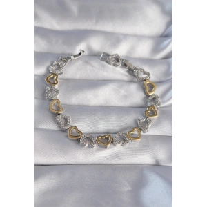 Vip Seri Pirinç Çift Renkli Zirkon Taşlı İçi Boş Kalp Tasarımlı Bileklik