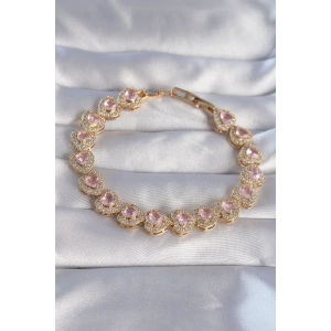 Vip Seri Pirinç Gold Renk Pembe Zirkon Taşlı Kalp Tasarımlı Bileklik