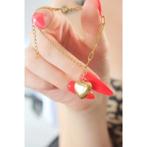 316L Çelik Gold Renk Zincir Model Kalp Figür Kadın Bileklik