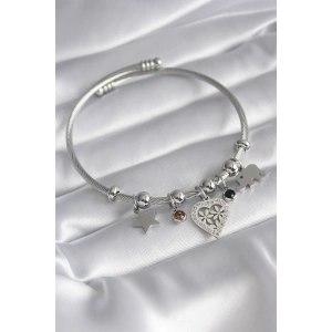 316L Çelik Gümüş Renk Zirkon Taşlı Kalp Figür Fil Detay Charm Model Kadın Bileklik