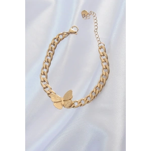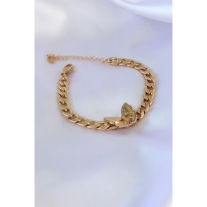 316L Çelik Gold Renk Kelebek Figür İşleme Detay Zincir Model Kadın Bileklik