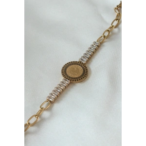 316L Çelik Gold Renk Tam Altın Modelli Zirkon Taşlı Kadın Bileklik