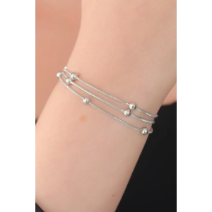 316L Kararmaz Çelik Gümüş Renk Top Zincirli Kadın Bileklik
