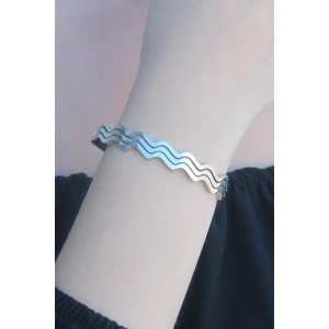316L Kararmaz Çelik Gümüş Renk Dalga Model Kelepçe Kadın Bileklik