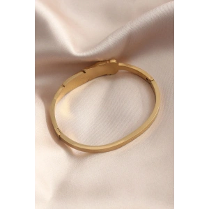 316L Çelik Gold Renk Çeyrek Altın Zirkon Taş Detay Kadın Kelepçe