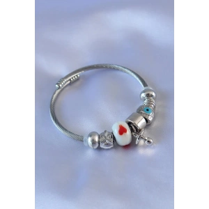 Kalp ve Nazar Boncuk Detaylı Charm Kadın Bileklik