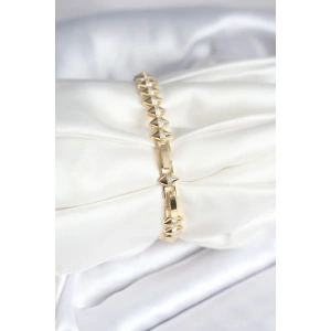 Pirinç Gold Renk Zirkon Taşlı Baklava Model Kadın Bileklik
