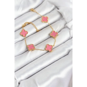 316L Çelik Gold Zincir Pembe Yonca Renk Bileklik
