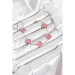 316L Çelik Gümüş Zincir Pembe Renk Yonca Bileklik