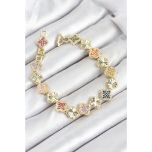 Pirinç Zirkon Taşlı Yonca Model Gold Renk Kadın Bileklik