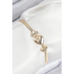 Pirinç Zirkon Taşlı Kalp Model Gold Renk Kadın Bileklik