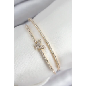 Pirinç Zirkon Taşlı Kelebek Model Gold Renk Kadın Bileklik