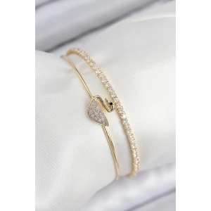 Pirinç Zirkon Taşlı Kuğu Model Gold Renk Kadın Bileklik