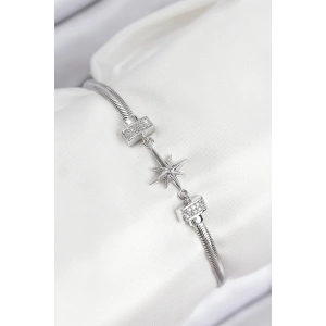 Pirinç Zirkon Taşlı Kutup Yıldızı Model Gümüş Renk Kadın Bileklik