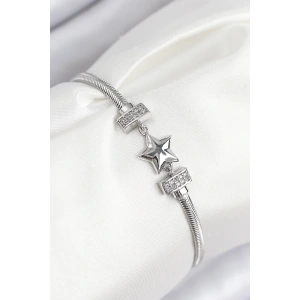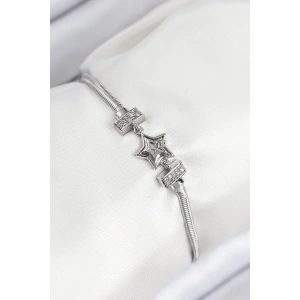 Pirinç Zirkon Taşlı Yıldız Model Gümüş Renk Kadın Bileklik
