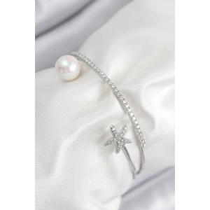 Pirinç Zirkon Taşlı Yıldız Ve İnci Model Gümüş Renk Kadın Bileklik