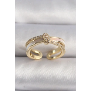 Pirinç Gold Renk Zirkon Taşlı Düğüm Model VIP Seri Kadın Yüzük