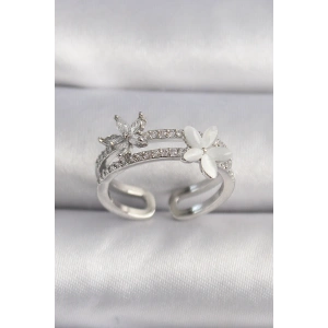 Pirinç Gümüş Renk Zirkon Taşlı Beyaz Mineli Kelebek Model Ayarlanabilir Yüzük