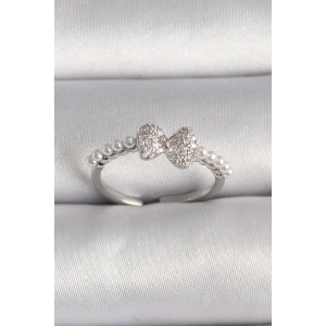Pirinç Gümüş Renk Zirkon Taşlı Kelebek Model İnci Detay Ayarlanabilir Yüzük