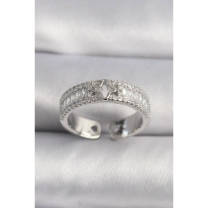 Pirinç Gümüş Renk Zirkon Taşlı Yıldız İşleme VIP Seri Kadın Yüzük