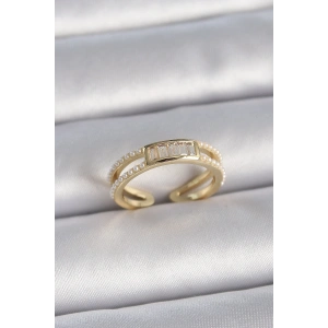 Pirinç Gold Renk Ayarlanabilir Sıralı İncili Zirkon Taş Detaylı Kadın Yüzük