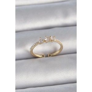 Pirinç Gold Renk Ayarlanabilir Zirkon Taşlı Kalp Beyaz Mineli Model Kadın Yüzük