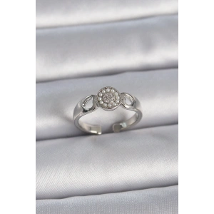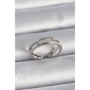Pirinç Gümüş Renk Ayarlanabilir Zirkon Taşlı Beyaz Mineli Model Kadın Yüzük