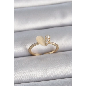 Pirinç Gold Renk Zirkon Taşlı Kalp İnci Detaylı Ayarlanabilir Model Kadın Yüzük