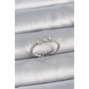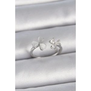 Pirinç Gümüş Renk Ayarlanabilir Zirkon Taşlı Kelebek Model Kadın Yüzük