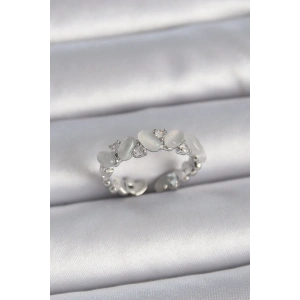 Pirinç Gümüş Renk Zirkon Taşlı Kalp İnci Detay Ayarlanabilir Model Kadın Yüzük