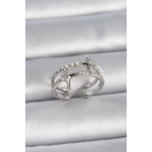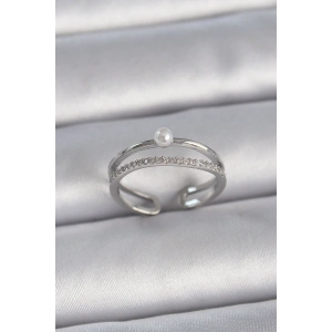 Pirinç Gümüş Renk Zirkon Taşlı İnci Detay Ayarlanabilir Model Kadın Yüzük