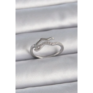 Pirinç Gümüş Renk Zirkon Taşlı Yılan Ayarlanabilir Model Kadın Yüzük