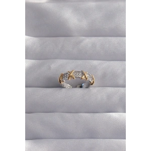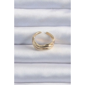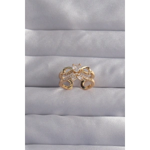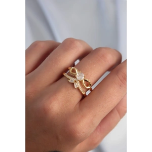 Pirinç Ayarlamalı Gold Renk Zirkon Taşlı 2li Görünüm Fiyonk Yüzük