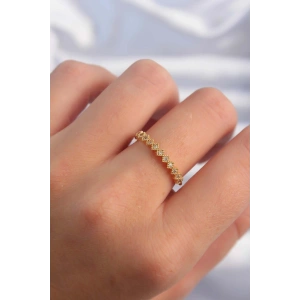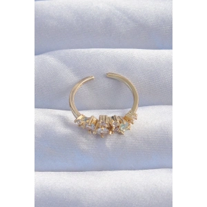 Pirinç Altın Renk Minimal Sıralı Zirkon Taşlı Ayarlanabilir Yüzük
