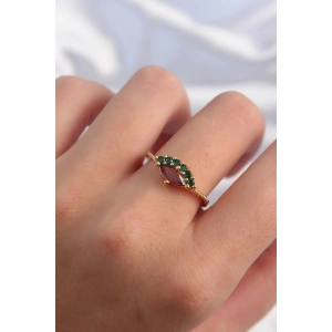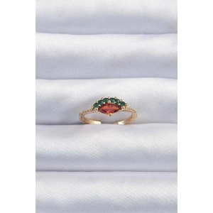 Pirinç Altın Renk Renkli Zirkon Taşlı Ayarlanabilir Karpuz Model Yüzük