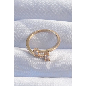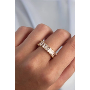 Pirinç Ayarlamalı Gold Renk Baget Taşlı Su Yolu Yüzük