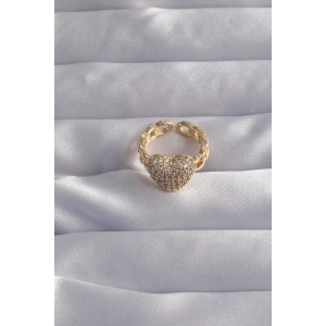 Pirinç Gold Renk Zirkon Taşlı Kalp Model Kadın Yüzük