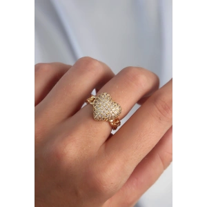 Pirinç Gold Renk Zirkon Taşlı Damla Detay Ayarlanabilir Yüzük