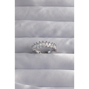 Pirinç Ayarlamalı Gümüş Renk Baget Taşlı Su Yolu Yüzük