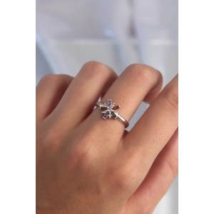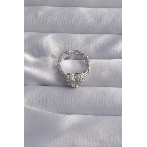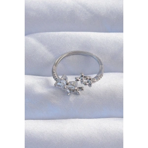 Pirinç Gümüş Renk Zirkon Taşlı Çiçek Model Ayarlanabilir Yüzük