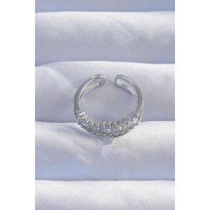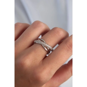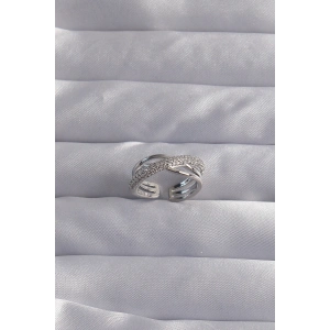 Pirinç Ayarlamalı Gümüş Renk Zirkon Taşlı Çapraz Görünüm Yüzük