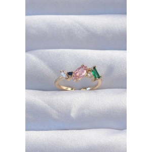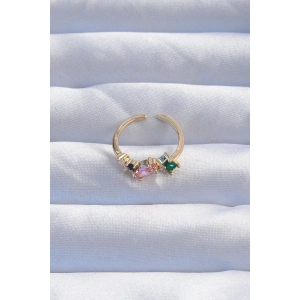 Pirinç Gold Renk Renkli Zirkon Taşlı Ayarlanabilir Yüzük